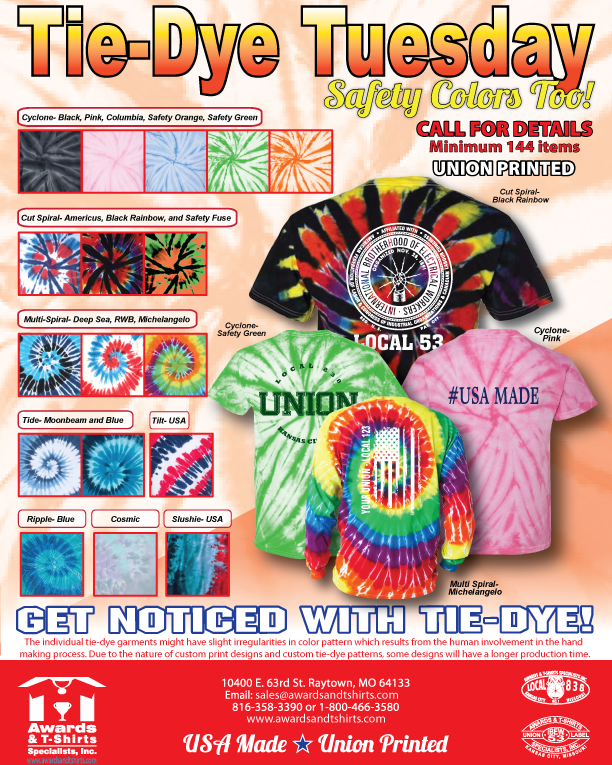 Let us represent your union with our custom tie-dye designs! From custom tees, decals, and more, we will make your union stand out with our variety of products we offer. Check out some designs we offer HERE!